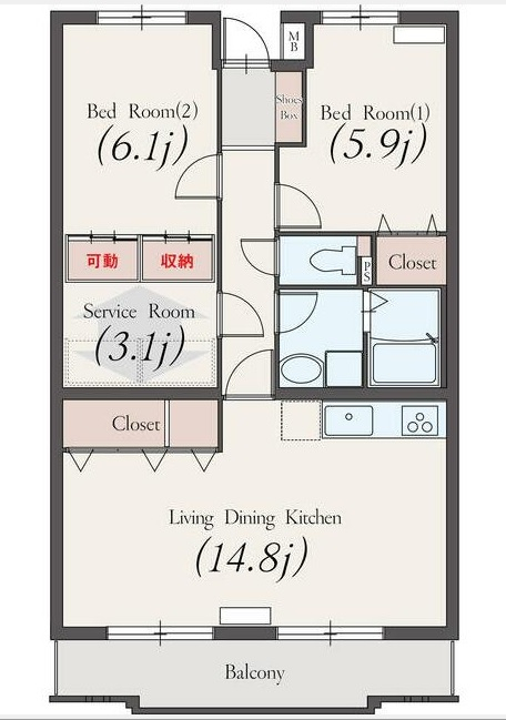 | 間取り | 2LDK+S | 間取り詳細 | 洋6.1 洋5.9 LDK14.8 S3.1 | 専有面積 | 68.82㎡ |